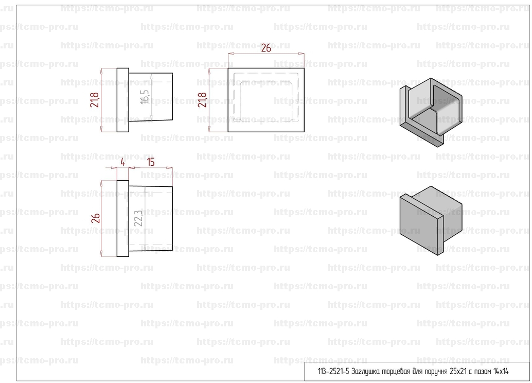 113-2521-5 Заглушка торцевая для поручня 25*21 с пазом 14*14