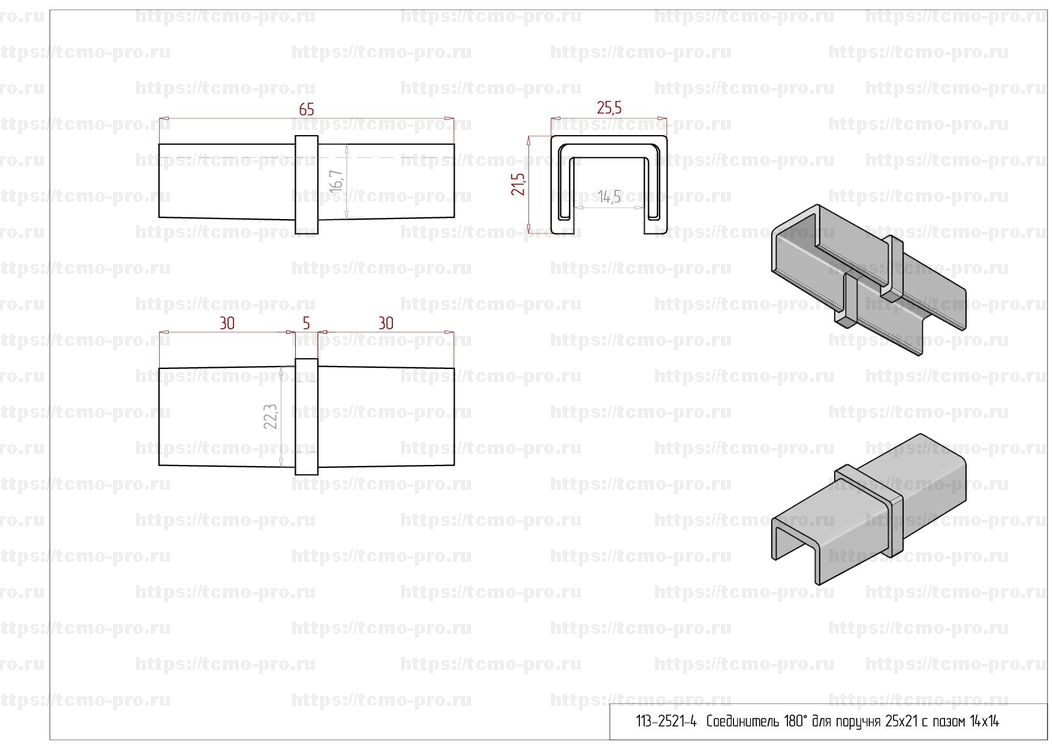 13-2521-4 Соединитель 180° для поручня 25х21 с пазом 14х14
