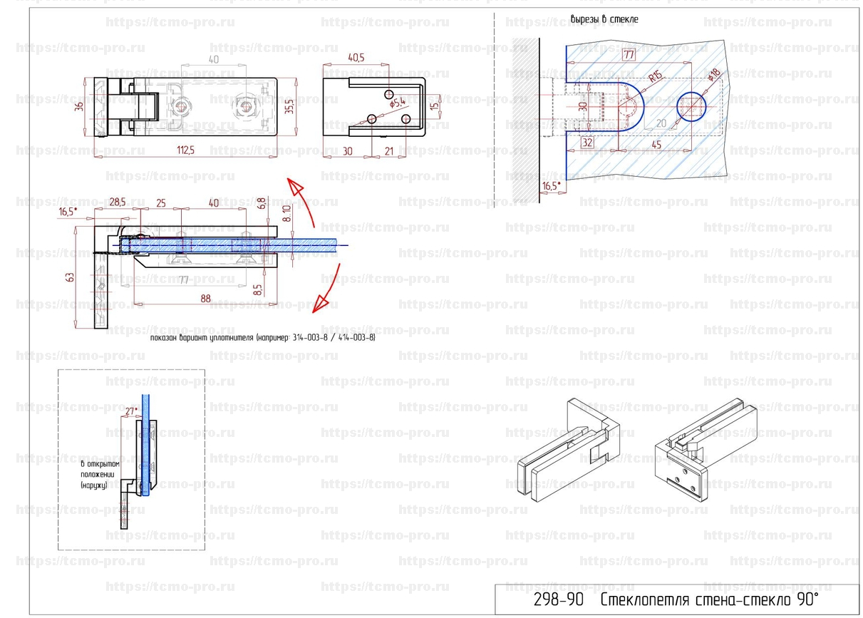 SND-298-90 Стеклопетля стена-стекло 90гр