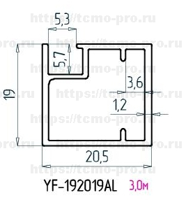 YF-192019AL Профиль рамочный узкий для светодиодной ленты 19*20*19*3000мм