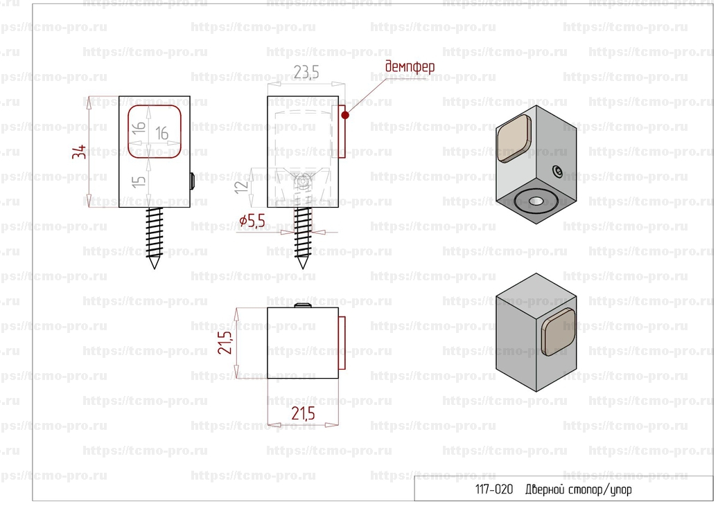 117-024-15х15 Стопор дверной на штангу 15х15