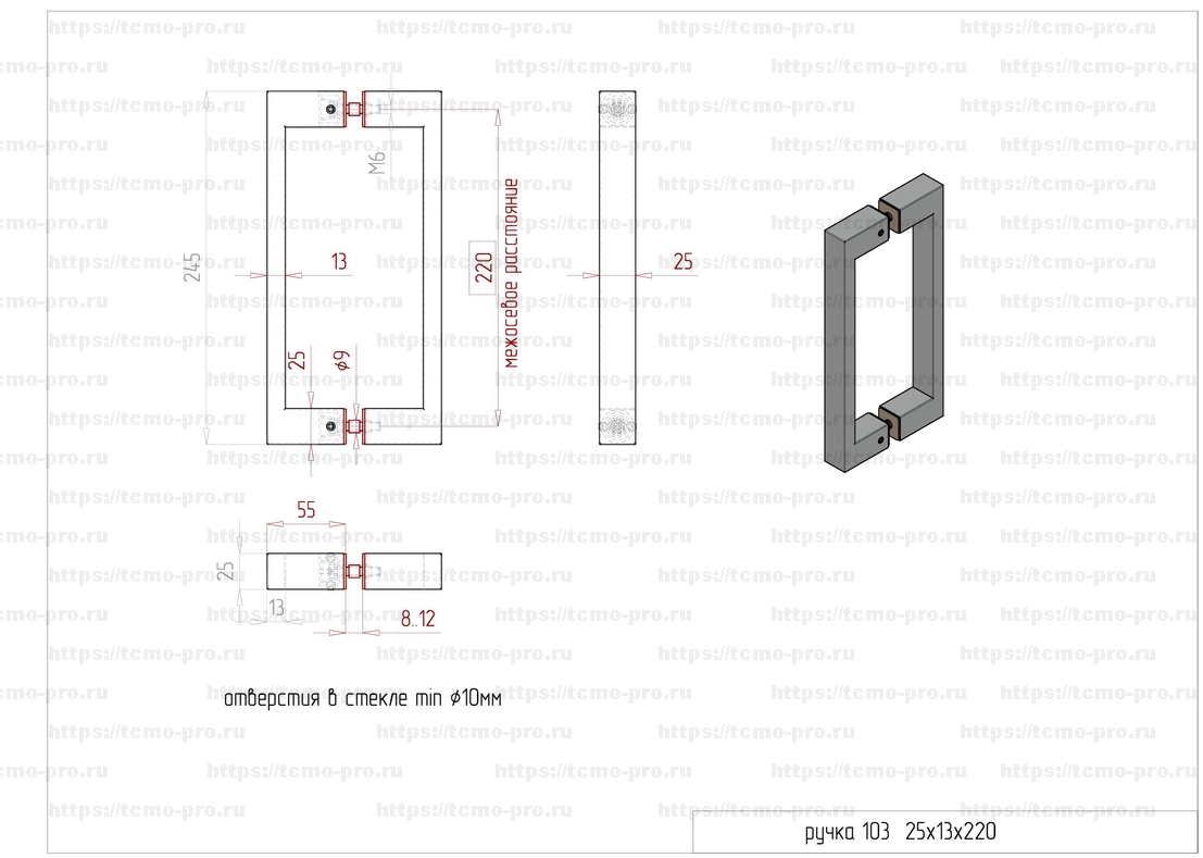 103 Ручка для стеклянной двери 25*13*220