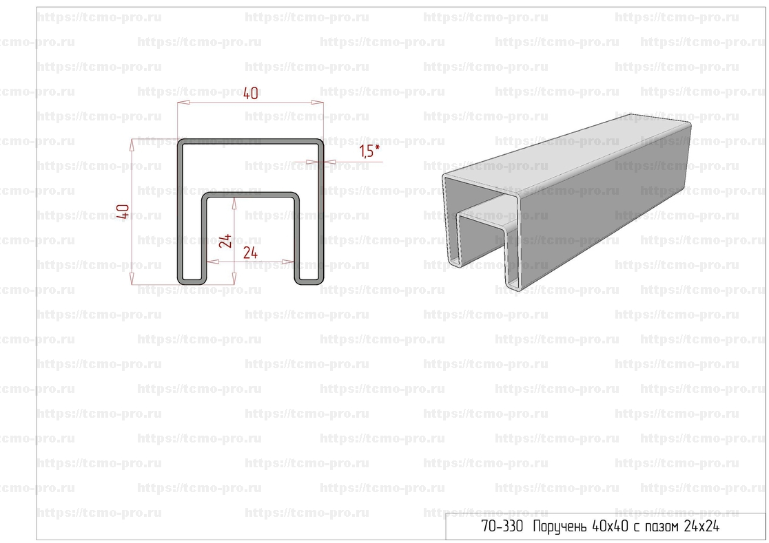 70-330 Поручень с пазом 40*40
