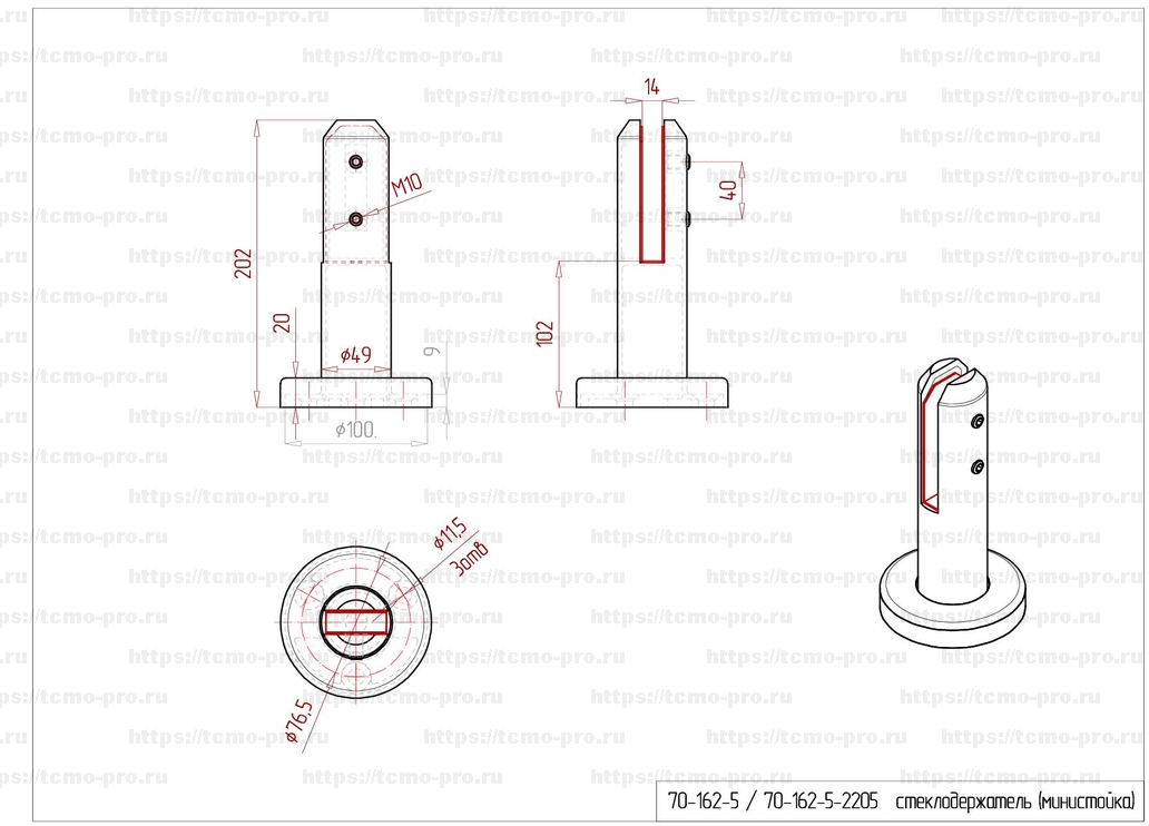 70-162-5-2205 Стеклодержатель (мини стойка) без сверления