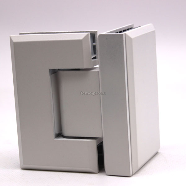 Петля из нержавеющей стали AISI-304 без покрытия. Предназначена для крепления стеклянной двери на стеклянную перегородку душевой кабины под углом 90º. Обеспечивает поворот двери в обе стороны на угол 90º с фиксацией. При открывании на меньший угол дверь возвращается в исходную позицию.