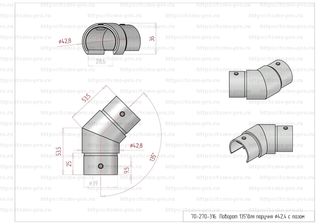 70-270-316 Соединитель для поручня с пазом d42.4 мм
